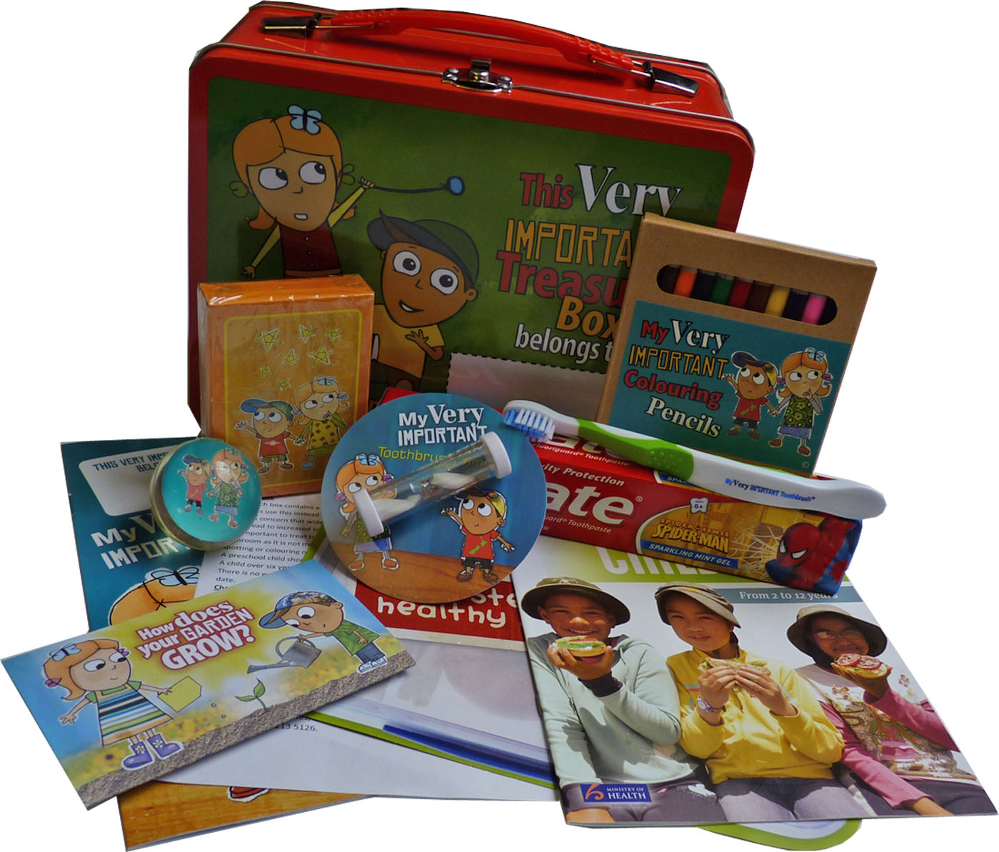 The Waikato has very high statistics for the amount of dental caries our pre-schoolers have. The two dental resources in the treasure tins are used as education tools to ensure the message gets through that, everyone should brush their teeth at least twice a day for at least 2 minutes.