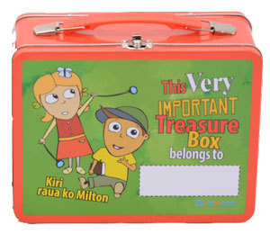 Used by children as lunch boxes and treasure tins to store toys. The tins are a cost effective product with high perceived value. A strong brand awareness depicting the two characters Kiri and Milton. They also appear on the other main products packed in the tins.